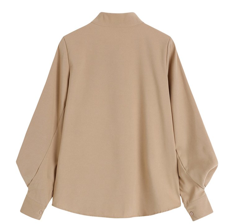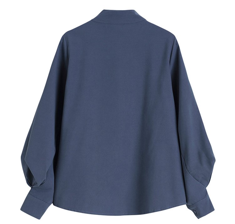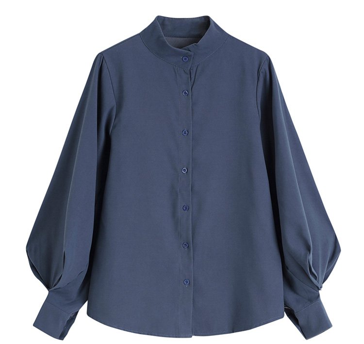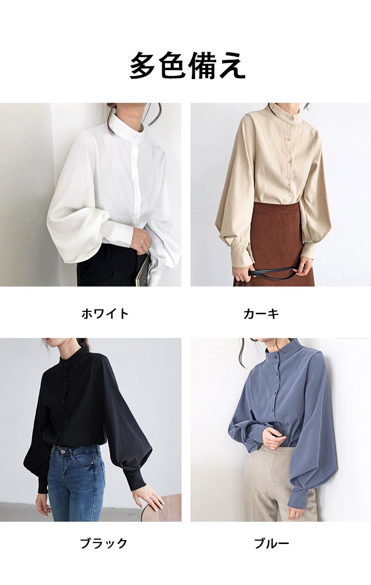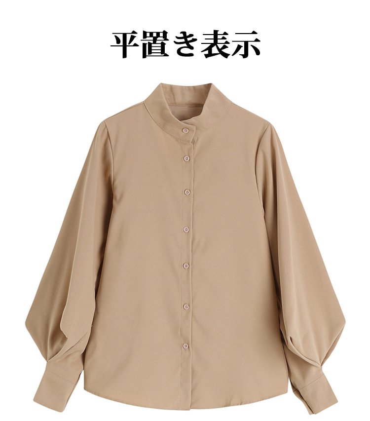 ランタンスリーブ×バンドカラーの無地シャツ